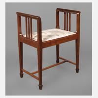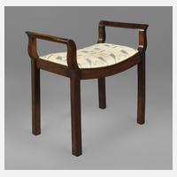 um 1910, Nussbaum massiv, braun gebeizt, restauriert, Bezug und Polster erneuert, Maße 71 x 60 x 35 cm.