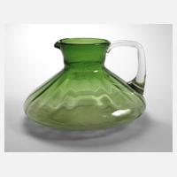 Meyr´s Neffe, um 1905, farbloses Glas nach Grün verlaufend, optisch geblasen, abgeflachter Korpus, abgekanteter farbloser Henkel, kurze Schnaupe, leichte Gebrauchsspuren, unbeschädigt, H 16 cm.