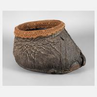 um 1900, als Papierkorb umgearbeiteter Lauf eines Dickhäuters, mit stärkeren Altersspuren, Maße 30 x 45 x 30 cm, beigegeben Cites-Papiere.