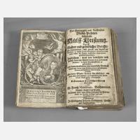 von D. Johann Gottfried Hirschens, Pastoris bey der Kirche zu St. Petri und Pauli in Reichenbach und Abjuncti der Plauischen Inspection, Leipzig in der Lanckischen Buchhandlung 1759, Format 8°, [4] Bl., 827/104 S., [14] Bl., blindgeprägter Ganzledereinband der Zeit mit zwei Messingschließen an Lederriemen, Holzdeckel, im Spiegel und auf fliegendem Vorsatzblatt mit handschriftlichen Besitzervermerken und Datierungen ab 1804, Frontispiz und Titelblatt fehlen, Alters- und Studierspuren.