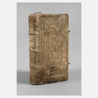 Biblia Sacra vulgatae editionis sixti V. pontificis maximi juss recognita atque edita, versiculis distincta [...], everendissimi et celsissimi s. r. i. principis ac domini D. Marquardi Sebastiani imperialis ecclesiae Bambergensis episcopi [...], Sumptibus Wolfgangi Mauritii Endteri, Bibliop. Norimb. 1693, Format 4°, [11] Bl., 509/522 S., zweifarbiges Titelblatt, Farbschnitt, auf fünf Bünden im blindgeprägten Pergamenteinband der Zeit, Pappdeckel, Reste alter Schließen, eine Ecke geplatzt und mit oberflächlicher Fehlstelle, Kupfertitel fehlt, innen sauber und fest.