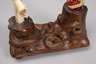20. Jh., Palisander und Bein aufwendig beschnitzt, teils graviert und farbig gefasst, naturalistisch gearbeitete Basis mit aufgesetztem Kruzifix und im Fegefeuer loderndem Gevatter Tod, Maße 15 x 15 x 7,5 cm.