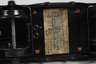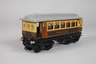 1930er Jahre, gemarkt, Blech farbig lithographiert, violett-beige, vierachsig, Spur 0, goldene Aufschrift, Scharnierdach, Celluloidfenster und vier Türen zum Öffnen, bespielter Zustand mit Altersspuren, Dach restauriert, L 21 cm.
