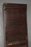 um 1910, gemarkt Box, Eiche dunkelbraun gebeizt, zweiteiliger Korpus mit Rollladenverschluss, Unterteil mit ausziehbarer Platte, das Oberteil mit Inneneinrichtung, stärkere Altersspuren, rest.bed., Schlüssel fehlt, Maße 225 x 86 x 40 cm.