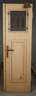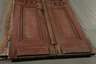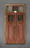 um 1900, Nadelholz rot-braun gebeizt, aufwendig verzierte zweiflügelige Tür mit schmiedeeisernem Gitter (verrostet und ein Blatt fehlt), original Schloss und Beschlag, komplett mit Rahmen und Oberlicht, restaurierungsbedürftig, Maße 222 x 135 cm.