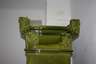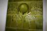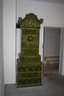 Ofenfabrik Cölln-Meissen, um 1900, gemarkt, hellgrün glasiert, reich mit Floralmotiven verziert, fachgerecht abgebaut und beschriftet, in zwölf Bananenkartons auf Palette verpackt, 10. Reihe links über Eck alte Reparaturstelle, zwei Kacheln mit Haarriss, rückseitig drei Kacheln im unteren Bereich andersfarbig verbaut, Warmhalte mit direktem Anschluss an Rauchabzug, Maße gesamt 235 x 83 x 69 cm (mit Wandabschluss), beigegeben Bauplan.
