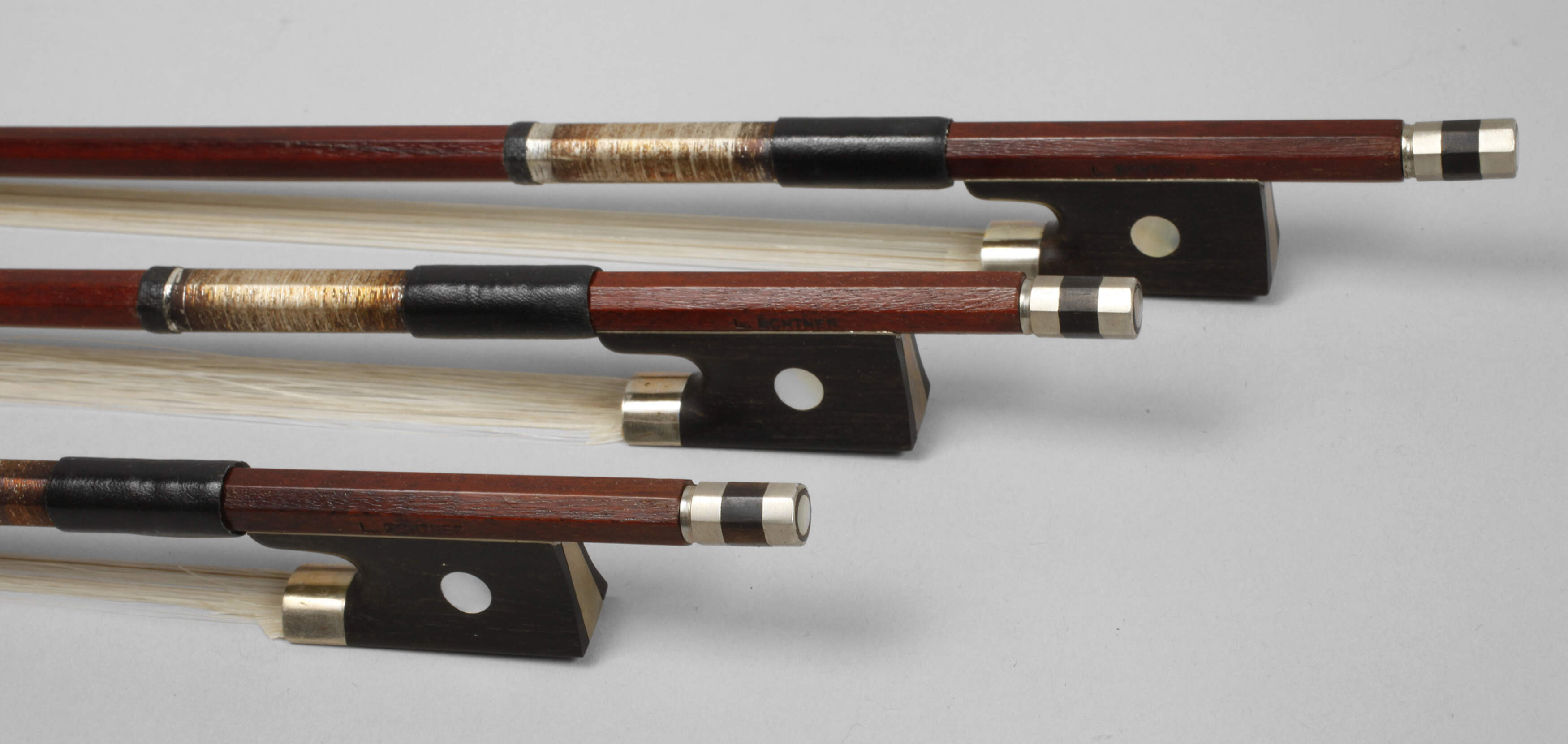Mitte 20. Jh., brandgemarkt L. Echtner, facettierte Tropenholzstangen mit Umwicklung aus Leder und Silberdraht, Frosch aus Ebenholz mit eingesetzten Zierelementen aus Perlmutt sowie Neusilbermontierungen, leichte Alters- und Gebrauchsspuren, L je ca. 74 cm.