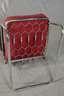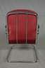 deutsch, 1950er Jahre, freischwingender, gepolsterter Armlehnsessel, Armlehnen mit geschwärzten Holzauflagen, originales rotes Stoffpolster, schwarz paspeliert, Alters- und Gebrauchsspuren, Chrom Z 2, Maße 85 x 63 x 76 cm.