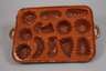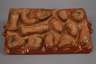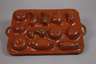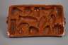 Ende 19. Jh., Terrakotta, die Oberseite braun glasiert, die Vertiefungen als Fische, Blattwerk, Herz, Blüten usw., Fehlstellen an den Kanten, L 46 und 51 cm.