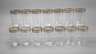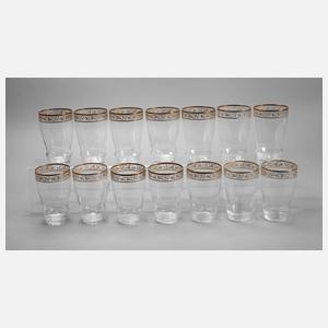 wohl Frankreich, Mitte 20. Jh., farbloses Glas, ausgekugelter Abriss, optisch geblasen, leicht schräg gerippt, geschliffen, geätzt und vergoldet, teilweise die Vergoldung etwas berieben, sonst jedoch unbeschädigt, H je 14 cm.