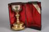 um 1780, ungemarkt, Bronze und Metallapplikationen, versilbert und vergoldet, mehrteilig montiert, getreppter und gewölbter Fuß mit stilisierten vegetabilen Reliefs, floral verzierter Balusterschaft, ausschwingende Kuppa mit aufgelegten, durchbrochen gearbeiteten Verzierungen als stilisierte Weinranken in Silber, im Etui Franz Wüst, Päpstlicher Goldschmied, Hoflieferant I.M.d. Königin W.w. von Sachsen, Köln, Hunnenrücken 28, Vergoldung partiell berieben, Alters- und Gebrauchsspuren, H 23,5 cm.
