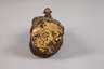 unbestimmten Alters, unsigniert, Bronze patiniert, Darstellung einer gebeugten Gestalt im langen Gewand, am Stand Reste alter Vergoldung, etwas berieben, H ca. 8,8 cm.