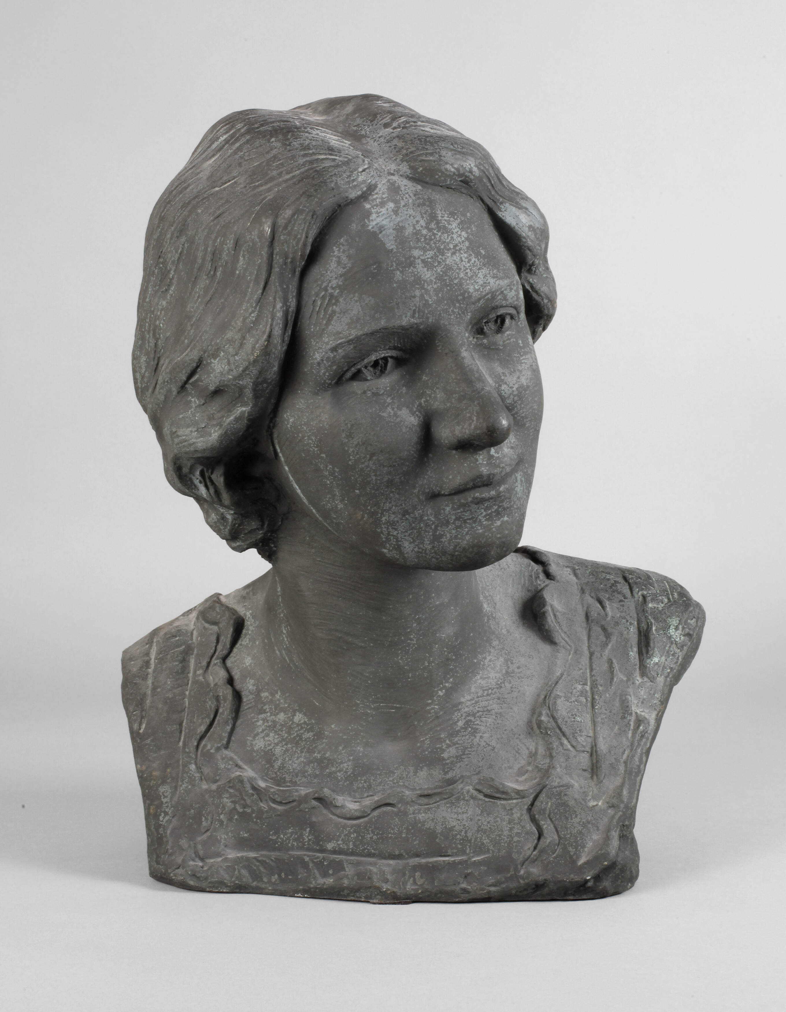 Anfang 20. Jh., seitlich signiert UL Franta Anyz, Bronze dunkel patiniert, Darstellung einer jungen Frau mit geflochtenem Haar, den Betrachter mit leicht zur Seite geneigtem Kopf freundlich anblickend, Witterungsspuren, H 42 cm. Künstlerinfo: rumänischer Bildhauer (1876 Nová Ves/Zaječov bis 1934 Gerlachov, Tatranská Polianka), Sohn des Metallurgen František Anýž, Ausbildung zum Modellierer, Former und Eisenwerker in der Eisenhütte in Komárov u Hořovice, Studium an der Kunstgewerbeschule Prag, 1892-1899 unter Professor Celda Klouček, Anton Helméssen und Emanuel Kautsch, dann Studium der dekorativen Metallgegenstände unter Emanuel Novák, bereiste Deutschland und Frankreich um Nürnberg, München und die Weltausstellung Paris zu besuchen, 1901 Heirat mit Pavlína Schnirchová, der Nichte des Bildhauers Bohuslav Schnirch, die als Mitgift einen beträchtlichen Betrag in das Unternehmen einbrachte und sich an der künstlerischen Gestaltung, besonders von Lampen beteiligte, 1896 bis 1900 ansässig in Anyž in Rokycany und Zusammenarbeit mit der Eisenhütte in Komárov, Gründung einer neuer Fabrik und Gießerei mit Prokop Nováček in Prag (1910 Grundstückskauf, ab 1912 auch dort wohnend), er fertigte dort Münzen, Medaillen, Plaketten und Abzeichen, ab 1918 goss er auch Skulpturen für andere Künstler, 1896 bis 1913 Mitglied der Mánes-Vereinigung bildender Künstler. Quelle: tschechische Wikipedia.