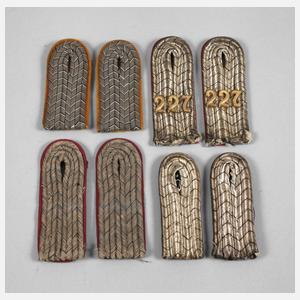 alle im Dienstgrad eines Leutnants, doppelte silberne Flachschnur, einmal (wohl Bayern) mit blauen Zügen, zweimal (wohl Preußen) mit schwarzen Zügen sowie einmal (wohl Preußen) mit schwarz-weißen Zügen, alle im guten Zustand.