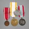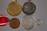 Hannover-Langensalza-Medaille 1866; zweimal silberne Tapferkeitsmedaille Hessen (Buntmetall versilbert), Ernst Ludwig, sowie Ehrenzeichen für Kriegsfürsorge Hessen-Darmstadt, guter Zustand, Bänder neuzeitlich.