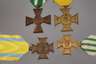 Erinnerungskreuz 1863–1864; Erinnerungskreuz 1866; Ehrenkreuz für freiwillige Wohlfahrtspflege im Kriege 1914–17; Ehrenkreuz (Allgemeines Ehrenzeichen) mit Schwertern; Friedrich August-Medaille in Silber; Dienstauszeichnung 1. Klasse (für Unteroffiziere), für 15 Jahre, sowie Medaille für Treue in der Arbeit, 1. Form, König Albert, guter Zustand, Bänder teilweise neuzeitlich.