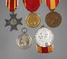 versilberte Verdienstmedaille Friedrich II; Kriegsverdienstkreuz 1916, Zink, Vergoldung fast völlig abgerieben; Dienstauszeichnung 3. und 2. Klasse, sowie bronzene Regierungsjubiläumsmedaille 1901, altersgemäßer Zustand, Bänder teilweise neuzeitlich.