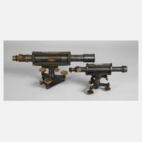 2. Hälfte 19. Jh., eines gemarkt Dennert & Pape Altona (Elbe) sowie St. 2110, Messing, mehrteilig gearbeitet und montiert, Messinstrumente zur Bestimmung von Höhen, Alters- und Gebrauchsspuren, nicht ganz komplett, L 29 und 41 cm.