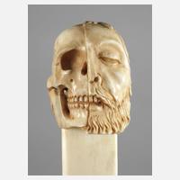 20. Jh., Bein beschnitzt, mehrteilig gearbeitet und montiert, Papiermesser mit Griffstück in Form eines männlichen Hauptes, die Hälfte des Konterfeis zeigt ihn als Totenschädel, gute Erhaltung, H 19,5 cm.