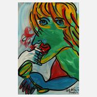 expressive, farbenfrohe Darstellung einer rauchenden Frau mit Glas, teils pastose Malerei, Acryl auf Leinwand, um 2010, rechts unten signiert und ortsbezeichnet "Pet Keil Berlin", auf der Rückseite betitelt "Träumende Frau" sowie nochmals signiert und bezeichnet, ungerahmt, Maße ca. 100 x 70 cm. Künstlerinfo: eigentlich Peter Robert Keil, dt. Maler und Plastiker (geboren 1942 in Züllichau/Pommern), Kindheit in Berlin-Wedding, ab 1954 Schüler von Otto Nagel, zunächst ab 1954 Lehre als Kunstschlosser, 1959–61 Studium an der Hochschule der Bildenden Künste Berlin-Charlottenburg, anschließend Aufenthalte bei Joan Miró auf Mallorca, Vertreter der "Jungen Wilden" und der "Hippie-Bewegung" der 1960er und 1970er Jahre, Mitglied im Bund Bildender Künstler Berlins, tätig in Zimmerau, Berlin, London, Paris und Los Angeles (Hollywood), Quelle: Wikipedia und Internethomepage des Künstlers.