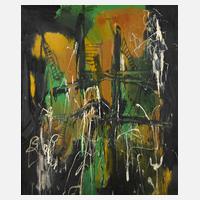 polychrome, teils stark pastose Komposition, Öl auf Leinwand, signiert, rückseitig originales Klebeetikett mit Datierung 1993, in Grün lackierte schlichte Holzleiste gerahmt, Falzmaße ca. 120 x 100 cm. Künstlerinfo: zeitgenössischer litauischer Maler, studierte an der Jouzas Naujalis Art School in Kaunas, dann Malerei in Vilnius, 1990-93 Studium in Leipzig. Quelle: Internet.