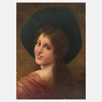 Kopfbildnis einer jungen Dame mit Perlenkette und üppigem Hut, keck über die Schulter zum Betrachter blickend, typisches Werk des als Schilderer der eleganten Damenwelt bekannten Düsseldorfer Malers, zu dessen Œuvre Bruckmann "Lexikon der Düsseldorfer Malerschule" schreibt "... Auf Ausstellungen ... zeigte er vornehmlich Genrebilder ... Seinen Lebensunterhalt verdiente Anders ... jedoch vornehmlich mit Porträtaufträgen. In einem Nekrolog wird er als eine »der bekanntesten Künstlererscheinungen aus Düsseldorfs alter Zeit« bezeichnet, ...", lasierende Bildnismalerei, Öl auf Leinwand und Keilrahmen, um 1890, rechts oben signiert "E. Anders", rückseitig auf dem Keilrahmen Etikett mit neuzeitlicher Info zum Künstler, alt retuschiert, doubliert, Craquelure, Keilrahmen durchzeichnend, Riss in der Leinwand, restaurierungsbedürftig, ungerahmt, Maße ca. 39,5 x 29,5 cm. Künstlerinfo: dt. Kupferstecher, Portrait- und Genremaler (1845 Magdeburg bis 1911 Mölln), 1860–63 Privatschüler in Kupferstich bei Ludwig Heitland und Malerei bei Andreas Müller in Düsseldorf, studierte 1862–68 zunächst Bildhauerei, schließlich Malerei an der Düsseldorfer Akademie bei Carl Müller, Heinrich Mücke, Carl Ferdinand Sohn, Julius Roeting, Andreas Müller, Josef Kohlschein und Rudolf Wiegmann, 1868–72 Privatschüler bei Wilhelm Sohn, anschließend als Portrait- und Genremaler freischaffend in Düsseldorf, Mitglied im Verein Düsseldorfer Künstler, in der Allgemeinen Deutschen Kunstgenossenschaft und 1871–1911 Mitglied im Künstlerverein "Malkasten", beschickte Ausstellungen in Düsseldorf, die Berliner Akademieausstellung und den Wiener Kunstverein, tätig in Düsseldorf, Quelle: Thieme-Becker, Vollmer, AKL, Saur "Bio-Bibliographisches Künstlerlexikon", Boetticher, Bénézit, Bruckmann "Lexikon der Düsseldorfer Malerschule", Schülerlisten der Düsseldorfer Akademie, Müller-Singer, Seubert, Dressler und Wikipedia.