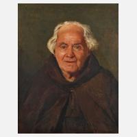Brustbildnis eines alten weißhaarigen Mannes im braunen Habit en face vor dunklem Grund, das Gemälde besticht durch die freundlichen lebensnahen Gesichtszüge des Dargestellten, lasierende, teils gering pastose Portraitmalerei, Öl auf Leinwand, um 1910, rechts unten mehrfach signiert "Cesare Caroselli", rückseitig auf dem Keilrahmen undeutlich bezeichnet "Restauration Nevrly 1999", minimale Craquelure, restauriert, im alten Goldstuckrahmen, Falzmaße ca. 62 x 49 cm. Künstlerinfo: italienischer Maler und Restaurator (1847 Genazzano bis 1927 Rom), zunächst Schüler der Kunstschule im Hospiz San Michele bei Francesco Giangiacomo (1782-1864), studierte anschließend an der Accademia di San Luca in Rom, 1866 unter Giuseppe Garibaldi Freiwilliger im Dritten italienischen Unabhängigkeitskrieg Teilnahme an der Schlacht bei Bezzecca, zurückgekehrt nach Rom einmonatige Inhaftierung durch die päpstliche Regierung, anschließend Fortsetzung des Studiums an der Accademia di San Luca, zunächst Landschafts- und Genremaler, fand er schließlich sein Betätigungsfeld in der Geschichts- und Kirchenmalerei sowie der Restaurierung, Mitarbeit an der Ausmalung der Tribuna der Lateranbasilika in Rom, der Kirche Madonna del Buon Consiglio Genazzano, der Kirche des Heiligen Herzens im Castro Pretorio, der Kirche Santa Maria in Traspontina, der Kirche Santa Andrea della Valle und anderer Sakralbauten, Ehrung mit dem Titel "Virtuosi al Pantheon", tätig in Rom, Quelle: Thieme-Becker, Saur "Bio-Bibliographisches Künstlerlexikon", Artikel von Luigi Venditti und Artikel von Agnese Fantozzi zum Künstler.