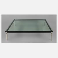 Modell LC10, Entwurf 1928, Ausführung Cassina, Italien, 1990er Jahre, Gestell an der Zarge gestempelt, mit Produktionsnummer 8745, größte Ausführung in 140 x 140 cm, originale Glasplatte mit winzigem Chip an der Unterseite, sonst Z 1, Maße 32 x 140 x 140 cm.