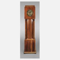 um 1900, auf dem Werk gemarkt Junghans, Nussbaumgehäuse mit in Messing gefassten facettgeschliffenen Scheiben, Werk mit Halbstundenschlag auf Tonfeder, floral verzierte Gewichte und Pendel, restauriert, funktionstüchtig, mit Schlüssel, H 118 cm.