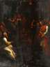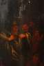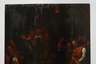 Darstellung der Szene, als der gefesselte und von Soldaten bewachte Jesus vor dem Kajaphas geführt wird und dieser ihn fragt "Bist du der Christus, der Sohn des Seligen?", worauf Jesus sagt "Ich bin", hierauf zerreißt der Hohepriester aus Zorn sein Gewand und beschuldigt Jesus der Gotteslästerung, in dünner Farbschicht ausgeführte Malerei mit gekonnt gesetzten Lichtern, Öl auf Holztafel, 17./18. Jh., rückseitig Nummer "S160" und dezente Schrubbspuren, leichtes Craquelure, holzwurmstichig, Malschicht teils zerkratzt und Spuren alter Rahmung, partiell gereinigt und retuschiert, restaurierungsbedürftig, ungerahmt, Maße ca. 42 x 32 cm.