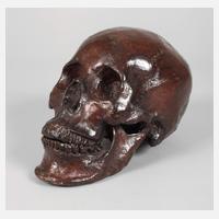20. Jh., Bronze und Stuck braun patiniert, signiert Mamito, menschlicher Totenschädel als Vanitassymbol, Patina partiell berieben, L 24 cm.