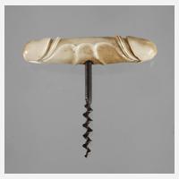 Anfang 20. Jh., Horn beschnitzt, Griffstück in Doppel-Phallus-Form, Montierung aus Eisen, Altersspuren, H 10 cm.