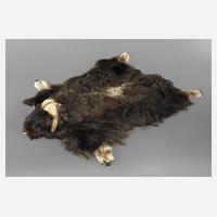 frühes 20. Jh., präparierter Kopf und Fell eines Moschusochsen mit eingesetzen Glasaugen und Gehörn, beigegeben alter Kaufbeleg, Altersspuren, Maße 260 x 210 cm.