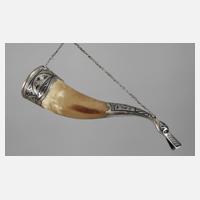um 1900, unleserlich gepunzt, als stilisierte Ente gestaltet, Tulasilber fein graviert, geflächelt und geschwärzt, an Kette, L 21 cm.