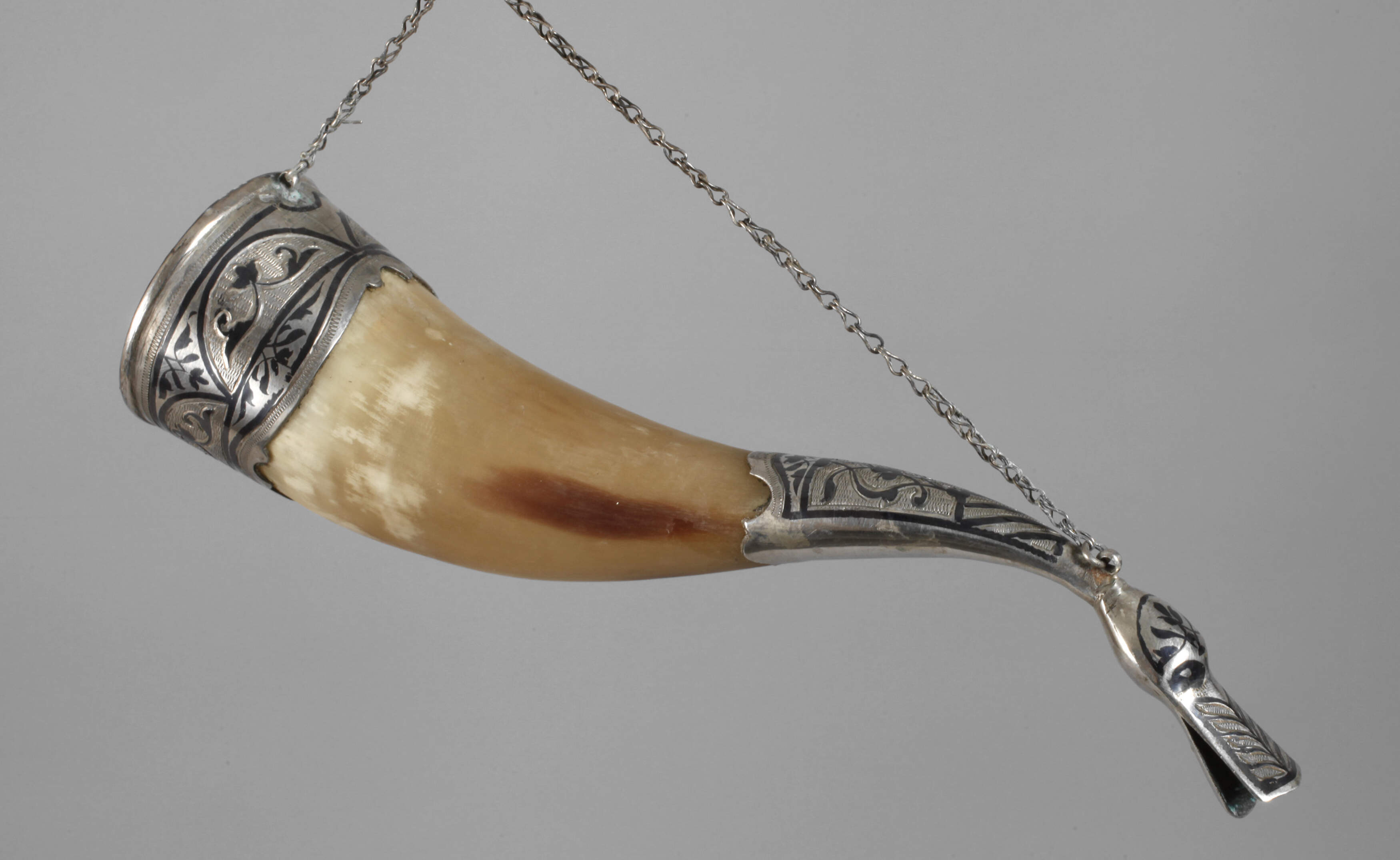 Russland Trinkhorn mit Silbermontierung