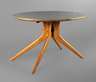Italien, 1950er Jahre, Entwurf Ico Parisi attr., Gestell aus Ahorn und Buche massiv, bündig eingelegte mattierte Glasplatte, extravagantes Gestell mit stark abgewinkelten, spitzzulaufenden Füßen, durch Metallkreuz und Schrauben verbunden, normale Alters- und Gebrauchsspuren, Maße 74 x 123 x 86 cm.
