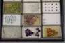 enthält unter anderem Hämatit, Bergkristall, Citrin, Melonenturmalin, pinker Turmalin, Aquamarin, Bergkristall, Amethyst und Peridot, Gesamtgewicht (geschätzt) 200 ct, sortiert in Boxen auf Tablett, Maße Tablett 28 x 20 cm.