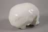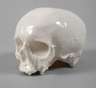 1. Hälfte 20. Jh., ungedeutete Pinselmarke in Rot und unterglasurblaue Pinselnummer 505, sehr weißes, durchscheinendes Knochenporzellan, plastischer Totenschädel ohne Unterkiefer, Glasur leicht craqueliert, H 12 cm.