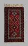 2. Hälfte 20. Jh., vorwiegend in dunklen Rottönen gehaltener Gebetsteppich, das Mittelfeld mit vier Rauten, gerahmt von Blütenmotiven und Ornamentbordüren, reinigungsbedürftig, Maße 50 x 100 cm.