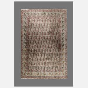 2. Hälfte 20. Jh., zarter Paisleydekor über hellem Fond, reinigungsbedürftig, mit Zertifikat, Maße ca. 381 x 301 cm.