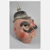 Mitte 20. Jh., Pappmaché farbig gefasst und silberbronziert, Schwellkopf als Narrenpolizist für dem Wächsebrauch der Narrenzunft Waldsee, leichte Altersspuren, H 60 cm.