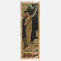 um 1900, Farblithografie auf Papier, bezeichnet Eigentum des Rosbacher Mineralbrunnen bei Bad-Homburg, hochrechteckiges Poster mit Werbefigur und Umschrift, fragmentarische Erhaltung, Maße 104 x 42 cm.
