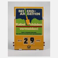 1970er Jahre, für die Deutsche Post, Pressspan, Weichholz, Aluminium und Kunststoff, ewiger Kalender für manuelle Einstellung von Wochentag, Datum und Monat, Alters- und Gebrauchsspuren, Maße 37 x 25 cm.