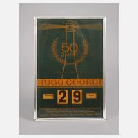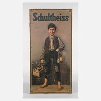 um 1910, mit Herstellervermerk Union-Werke Radebeul-Dresden, geprägtes Weißblech mehrfarbig lithografiert, mit Firmenschriftzug und Werbefigur, mit schmaler ornamentaler Bordüre, vier originale Bohrungen, Flugrost, kleine oberflächliche Verluste, Z 2, Maße 76,5 x 40 cm.