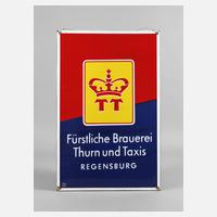 Anfang 20. Jh., Herstellervermerk Union-Werke A.G. Radebeul-Dresden, planes, langrechteckiges und leicht gehöhtes Schild in zweifarbiger Emaillierung, für die Grenzquell-Brauerei H. Günnel Wernesgrün i.V., kleine retuschierte Randbeschädigungen, sonst sehr gepflegter Zustand, Z 1, Maße 32 x 49 cm.