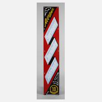 Anfang 20. Jh., ohne Hersteller, schmales hochrechteckiges Schild, mehrfarbig emailliert, zwölf originale Bohrungen, Z 1, Maße 82 x 15 cm.