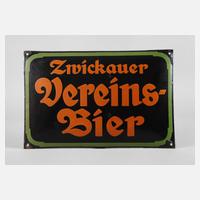 Anfang 20. Jh., Herstellervermerk Boos & Hahn Ortenberg-Baden sowie zusätzlich bezeichnet Pyro-Email, hochrechteckiges, dreifarbig emailliertes Türschild für die Zittauer Societäts-Brauerei mit Wappenschild und Umschrift, sowie vier originalen Bohrungen, Z 0, Maße 18 x 9,5 cm.