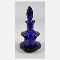 1. Hälfte 19. Jh., kobaltblaues Glas, geschliffener Bodenstern, schälgeschliffen, mit originalem Stopfen, H 18,5 cm.