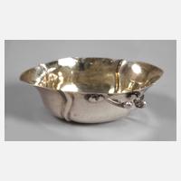 Schale Ende 19. Jh., gestempelt 800, Herstellermarke Otto Arthur Köln, ovale Schale im Barockstil mit durchbrochen gearbeitetem geschweiften Rand, verziert mit Blütenranken, reliefierten Engelchen und spielenden Putten, normale Altersspuren, kleine Dellen, L 22,5 cm, G ca. 172 g, dazu Toastständer 20. Jh., Metall versilbert, gestempelt EP, Herstellermarken James Dixon & Sons, Modellnummer 7860, minimal verdrückt, sonst altersgemäß gut erhalten, H 9,2 cm.