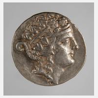 335-315 v. Chr., Avers Apollokopf mit Lorbeerkranz nach rechts, Revers Reiter ersticht gestürzten Gegner, Silber, D 22,5 mm, G ca. 12,6 g, ss+.